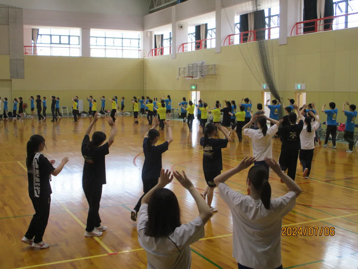 この授業では、約170名の1年生が参加し、楽しみながら健康を促進することを目的としています。指導者は松江市フォークダンス連盟からの専門家たちで、フォークダンスの歴史や文化についても触れながら、実技指導を行います。