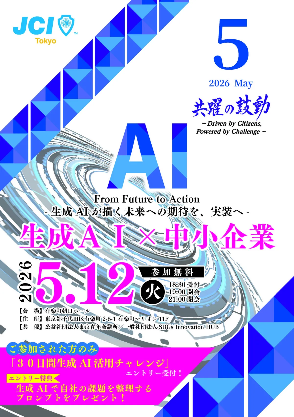 本イベントは、公益社団法人東京青年会議所と一般社団法人SDGs Innovation HUBにより共催されており、経済産業省中小企業庁をはじめとした多数の後援団体から支援を受けています。