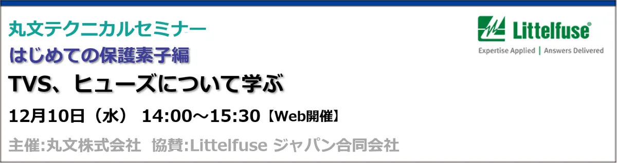 エレクトロニクス商社である丸文株式会社が、2025年12月10日(水)に無料のオンラインセミナーを開催します。このセミナーは「はじめての保護素子編TVS、ヒューズについて学ぶ」というテーマで、電子機器の設計や保護に関する基礎知識を学ぶ貴重な機会となります。特に、保護素子を初めて扱う方や、久しぶりに設計を行う方には非常に有益です。