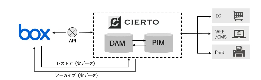 CIERTOは2016年にリリースされ、メディアや広告制作、SNS、ECサイトなどの幅広い業界で導入が進んだデジタルアセット管理システムです。新たに実現されたCIERTOとBoxの連携により、データのレストアとアーカイブが可能になりました。この機能によって、コンテンツ制作の流れが一層スムーズになります。