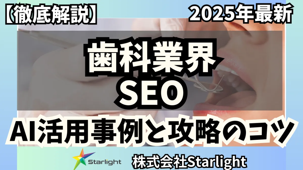 株式会社Starlightが発表した「2025年版 歯科業界向けAI×SEOトレンドレポート」は、歯科業界のプロフェッショナルに向けた最新の情報をまとめた資料です。このレポートでは、歯科医院がSEOを駆使して集客を強化するための成功事例や、AIを活用した効果的な施策が紹介されています。