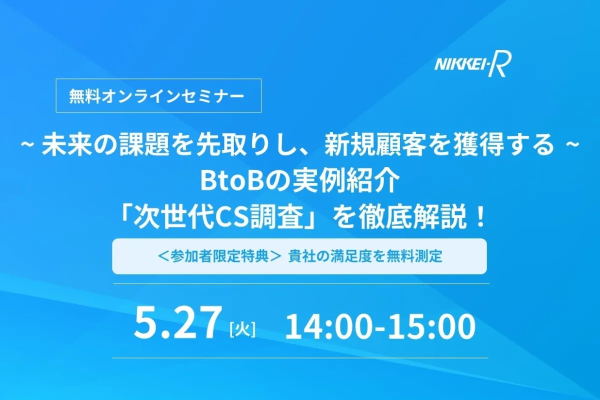 2025年5月27日、株式会社日経リサーチが主催する無料のオンラインセミナーが開催されます。このウェビナーでは、BtoB事業者向けに次世代の顧客満足度(CS)調査について詳しく解説します。