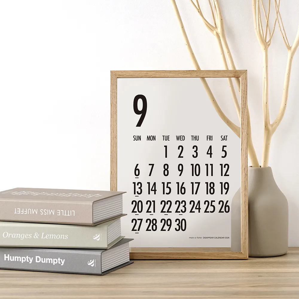 2025年9月1日、アイデア雑貨ブランドmon・o・tone(モノトーン)から、再生ポリプロピレン100%で作られた「透明カレンダー(2026年1月~12月)」がオンラインで発売されます。このカレンダーは、文字だけが浮かんで見えるデザインで、壁に掛けても圧迫感がなく、部屋のインテリアに溶け込みます。