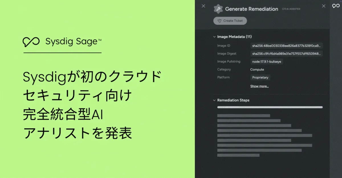 Sysdig(シスディグ)は、2025年6月25日に、同社のプラットフォームに新たにAIクラウドセキュリティアナリスト「Sysdig Sage™」を完全統合したことを発表しました。この革新的な技術により、セキュリティチームと開発チームは、リスクの特定から調査、修復までのプロセスを、今まで以上に迅速かつ効率的に実行できるようになります。