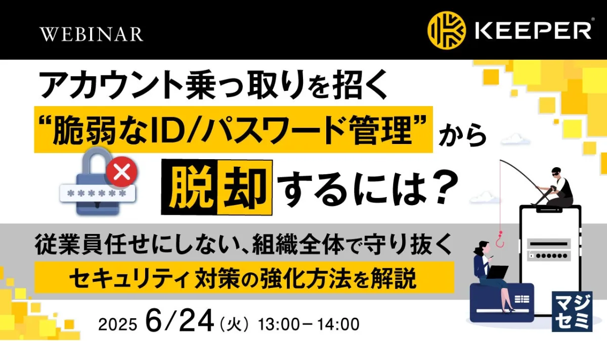 このウェビナーは、参加者の皆様がセキュリティ対策を一歩進めるための貴重な機会です。少しでも不安を抱えている方は、ぜひご参加ください。主催はKeeper Security APAC株式会社。協力としてマジセミ株式会社、株式会社オープンソース活用研究所が名を連ねています。
