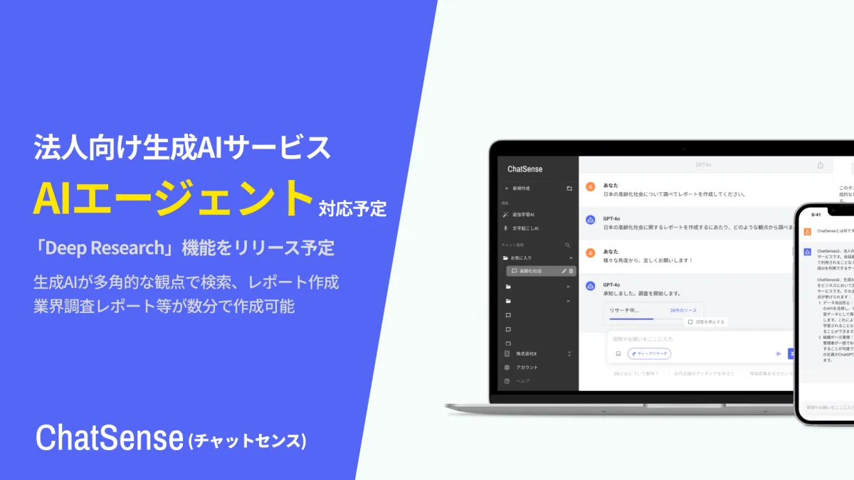 株式会社ナレッジセンスは、法人向け生成AIサービス「ChatSense」に新機能「Deep Research」を今月中にリリースする予定です。この新機能は、企業の調査業務を大幅に効率化することを目的に開発されたAIエージェントです。従来、数時間かかっていたWeb調査が、わずか数分で済むようになると期待されています。