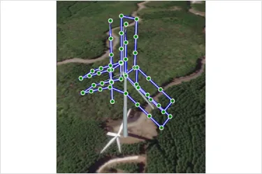 同時撮影機能: 1回のドローンのフライトで風力発電設備のブレードをすべて撮影可能です。自動撮影によって、作業の効率化が促進されます。