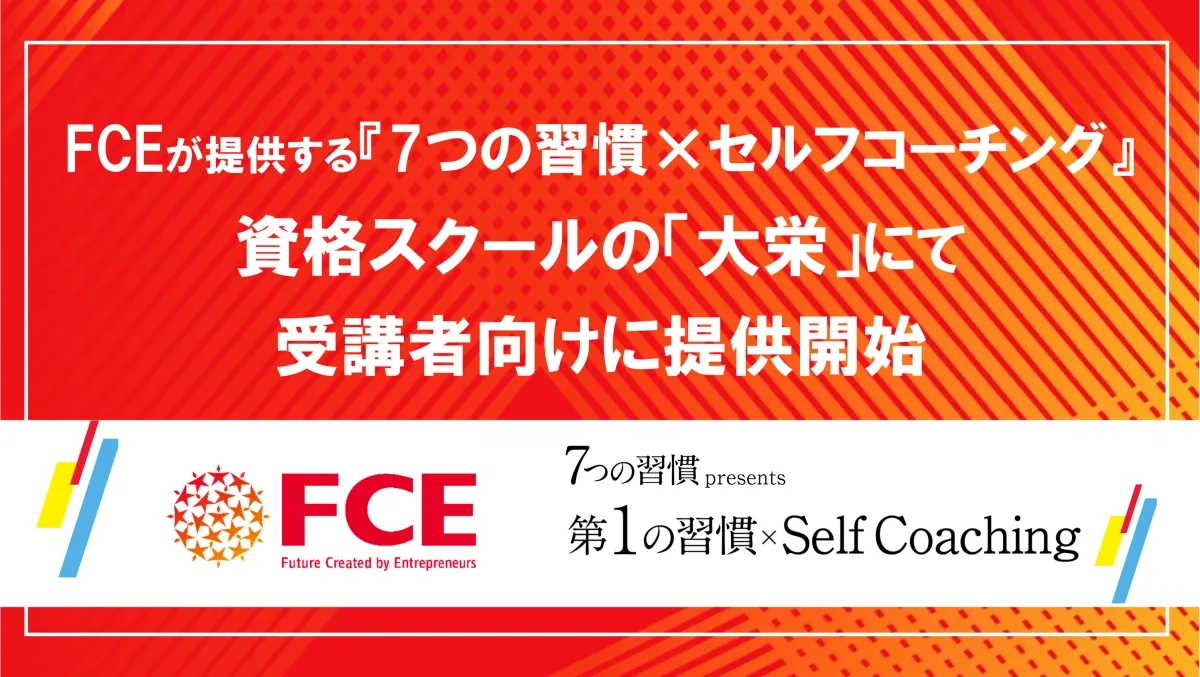 株式会社FCEは、資格スクール「大栄」との業務提携を発表し、世界初のセルフコーチングプログラム『7つの習慣×セルフコーチング』の提供を開始しました。この取り組みは、年間約1万人の受講者を持つ同スクールの教育環境において、受講者の学習効果を高めることを目的としています。