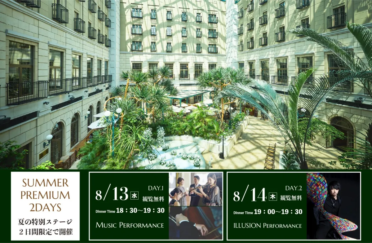 水戸プラザホテルは、2025年8月13日(水)と14日(木)の2日間限定で、「アトリウムプレミアムパフォーマンス」を開催いたします。このイベントは、観覧が無料であり、訪れる人々に特別なひとときを提供します。特に、音楽とイリュージョンのパフォーマンスが織りなす幻想的な空間が魅力です。
