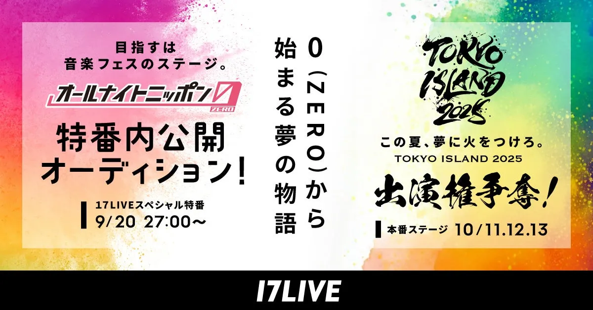 2025年10月11日から13日まで都内で開催される大型野外フェスティバル『TOKYO ISLAND 2025』に向けた出演者オーディションイベントが、2025年7月14日よりスタートします。この『TOKYO ISLAND 2025出演権争奪!オールナイトニッポン0(ZERO)特番内公開オーディション!』は、17LIVE株式会社が手掛けるもので、参加者は名だたるパーソナリティが集うラジオ番組「オールナイトニッポン0」内でのオーディションに進出するチャンスを得られます。