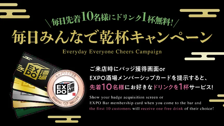 EXPO酒場本店のメンバーシップカードSBT(SoulBound Token)を持って訪れることで、毎日先着10名に好きなドリンク1杯が無料提供される特典を受けられるのが特徴です。これは、会員証をそのまま提示するだけで利用でき、リピート客を促す仕組みとなっています。