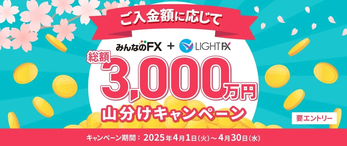 トレイダーズ証券株式会社は、2025年4月1日より特別なキャンペーンを開始することを発表しました。今回のキャンペーン、名付けて「総額3,000万円山分けキャンペーン」は、外国為替取引のサービス「みんなのFX」と「LIGHT FX」において実施されます。これは、特定の条件を満たしたお客様に対し、総額3,000万円を山分けするという魅力的な内容となっています。