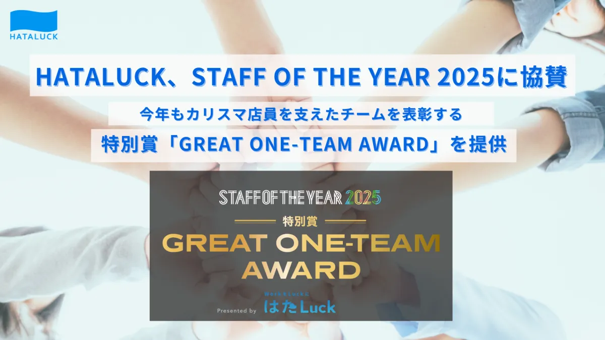 近年、サービス業界は人手不足や顧客の多様化など、様々な課題に直面しています。この状況の中、株式会社HataLuck and Person(以下、HATALUCK)が、「STAFF OF THE YEAR 2025」に協賛し、一人ひとりのスタッフの活躍を支えるために「はたLuck presents GREAT ONE-TEAM AWARD」を設立しました。このアワードは、カリスマ店員を支えるチーム全体の努力を称賛することを目的としています。