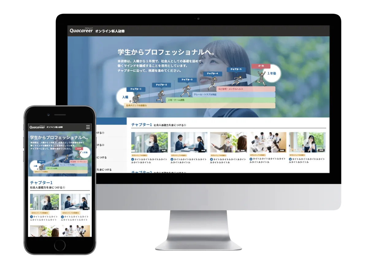 入職から1年間にわたり、社会人としての基本スキルと働く意識を養うためのプログラムが設計されています。このオンライン研修は、5つの主要パートに分かれており、それぞれのパートには複数本の動画が含まれています。受講は自由な時間と場所で行うことができるため、各スタッフは個々のペースに合わせて学ぶことが可能です。
