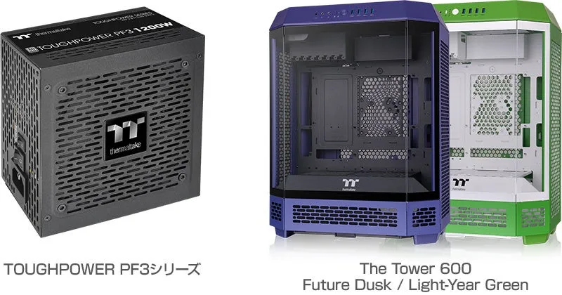 PC愛好者必見の新たな製品が発表されました。株式会社アスクが取り扱う、台湾のブランドThermaltakeが展開する新シリーズでは、80PLUS PLATINUMに認定された電源ユニット「TOUGHPOWER PF3」と、八角柱デザインが特徴的なPCケース「The Tower 600 Future Dusk / Light-Year Green」がラインナップに加わります。