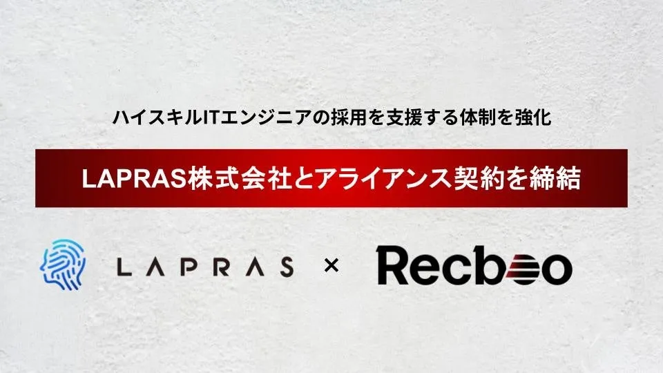 株式会社ノックラーンが運営する採用コンサルティングサービス「Recboo(リクブー)」が、ハイスキルITエンジニアの採用支援をさらに強化するため、LAPRAS株式会社とアライアンス契約を締結したことを発表しました。両社の強みを活かして、スタートアップ企業に向けた効果的な採用支援が期待されています。