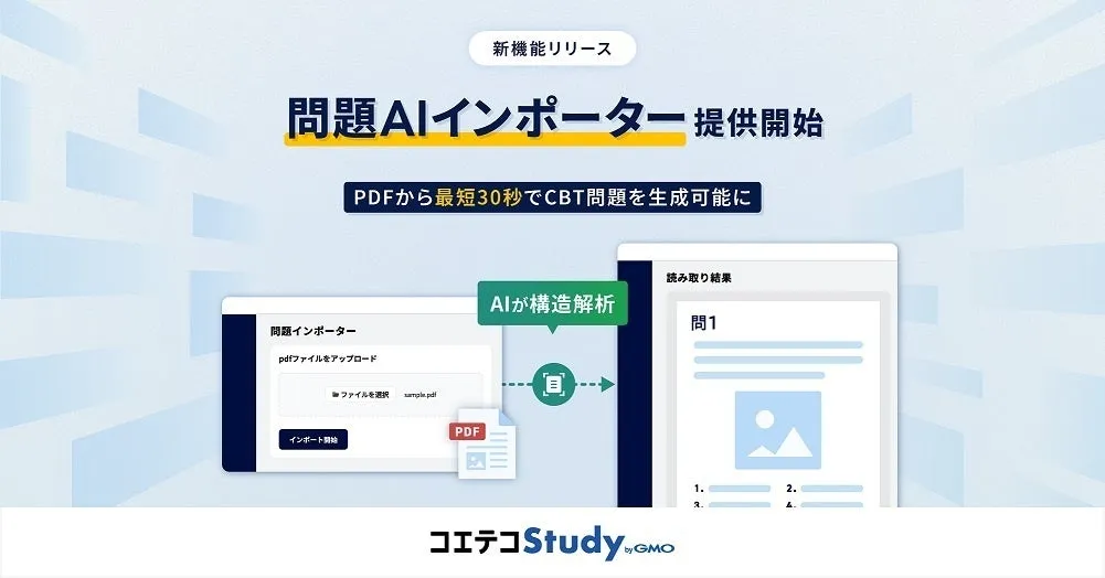 GMOメディア株式会社は、2025年5月26日(月)より、高校教育現場向けに新しい機能「問題AIインポーター」を提供開始すると発表しました。この新機能により、教員が過去に作成した試験問題を簡便にCBT(Computer Based Testing)形式に変換できるようになります。