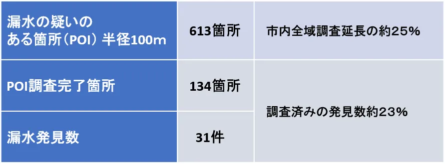 令和7年8月には、衛星画像の解析が終了し、漏水の疑いのある場所の特定も完了しました。この結果、10月からは現地での詳細調査に移行しています。11月30日時点では、31件の漏水を発見することに成功しており、早急な修繕作業にもつながっています。これにより、社会全体での水資源の無駄遣いや漏水による事故を未然に防ぐことが可能となります。
