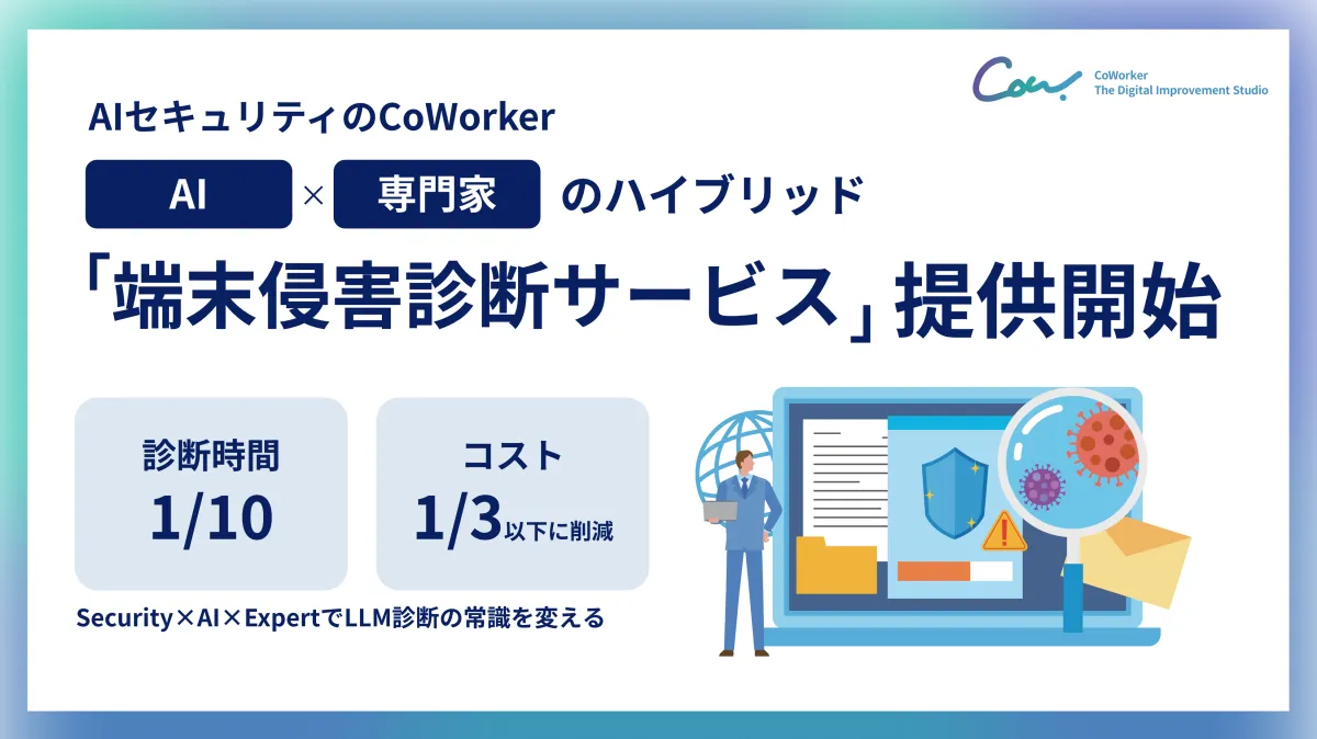 CoWorker株式会社は、企業の社内環境のセキュリティを強化する「端末侵害診断サービス」を新たに提供開始しました。このサービスは、従来のマルウェア感染や情報漏えい、内部不正といったセキュリティリスクだけでなく、AIエージェントやツールの利用に伴うサプライチェーン攻撃などの新たなリスクをもシステム内から可視化します。