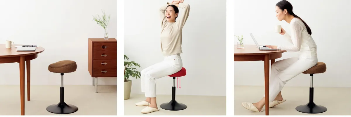「ミズノ スクワットスリール デルタ」は、空気圧を利用して座面が上下に動きます。これにより「座る&立つ」という動作を繰り返すことで、太ももを中心に筋肉を効果的に鍛えることができます。特に重要なのは、自然と正しい姿勢が保たれる骨盤サポート設計がなされている点です。背筋が伸びることで、より効果的にトレーニングを行えるのです。さらに、レバー操作によって座面の高さを調整できるため、普通の椅子としても活用できます。