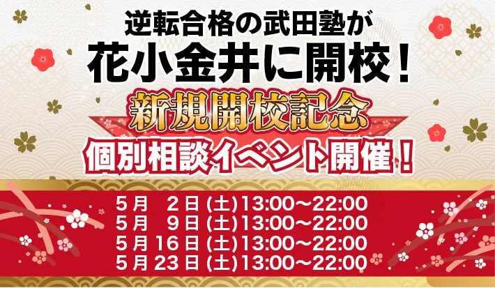 「武田塾花小金井校」の開校を記念して、特別な個別相談イベント『地上最速の勉強方法 個別に教えちゃいますスペシャル』が開催されます。これにより、受験を目指す学生たちが自分に合った勉強法を見つける手助けをする狙いがあります。相談に参加することで、具体的な学習プランや勉強の進め方を学ぶことができます。