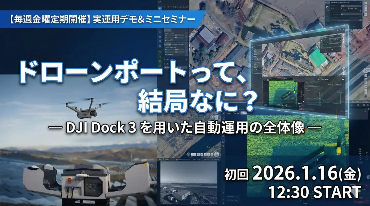 合同会社SORABOTが、株式会社アイ・ロボティクスとの協力により、ドローンポート「DJI Dock3」を用いた遠隔・自動ドローン運用のデモを、2026年1月16日から4月10日までの毎週金曜日に開催します。オンラインでのライブ配信形式で、実機を用いたデモやミニセミナーを通じて、ドローン技術の実際を体験できます。