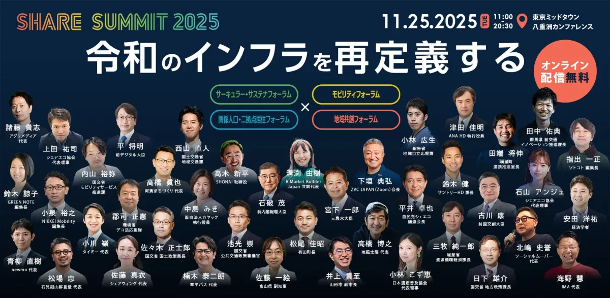 一般社団法人シェアリングエコノミー協会は、2025年11月25日(火)、東京ミッドタウン八重洲カンファレンスにて『SHARE SUMMIT 2025』を開催することを発表しました。今回のイベントは、オンラインと現地でのハイブリッド形式で行われ、記念すべき10回目のテーマは「令和のインフラを再定義する」という大胆な提案です。