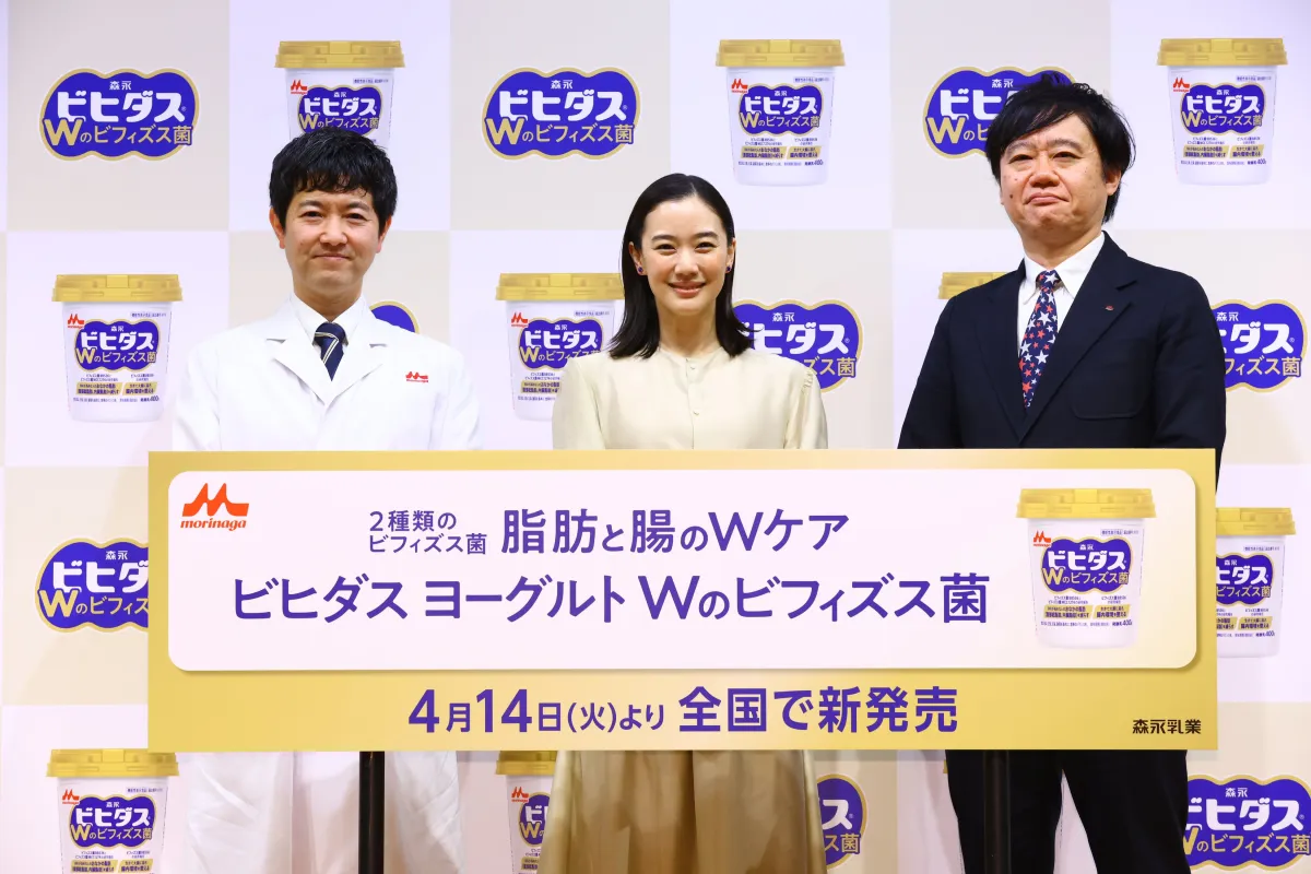 2026年4月8日に東京で開催された新商品発表会に、蒼井優さんが登壇しました。このイベントでは、森永乳業が日本初の「Wのビフィズス菌」を配合した「ビヒダス ヨーグルト」を紹介しました。新CMのキャラクターとして登場した蒼井さんは、自らの腸活習慣について語り、多くの人にその魅力を伝えました。
