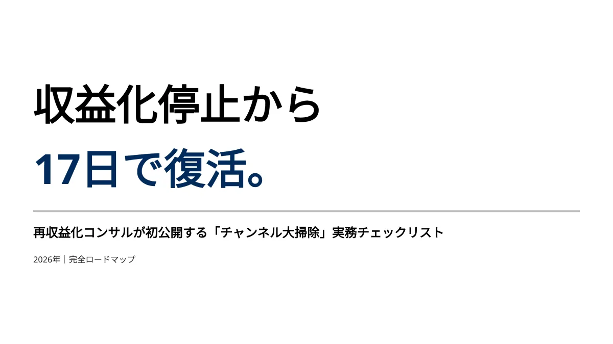 株式会社日本動画センターが提供する新たな資料『収益化停止から17日で復活。再収益化コンサルが初公開する「チャンネル大掃除」実務チェックリスト』が注目されています。この資料は、2026年基準のYouTube収益化審査に対応するための手順を詳しく解説しており、収益化が停止したチャンネルを復活させるための実践的なガイドとなっています。
