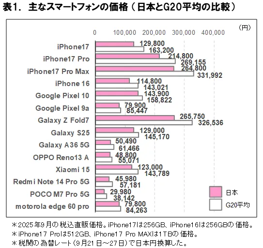 2025年10月23日、株式会社 ICT総研(東京都中央区)が発表した調査結果によりますと、日本国内におけるスマートフォン及びタブレット端末の価格がG20平均よりも低く設定されていることが明らかになりました。特に、iPhoneやGoogle Pixel、iPadなどの主要ブランドが対象となりました。