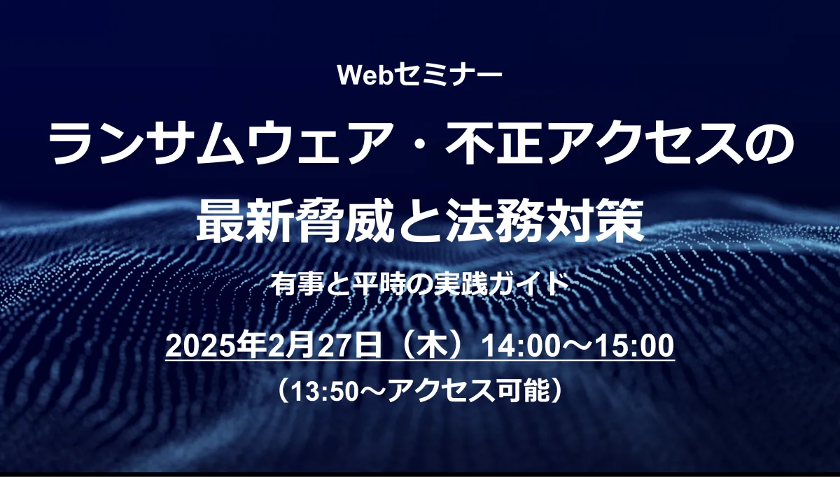 Webセミナー「ランサムウェア・不正アクセスの最新脅威と法務対策」の開催