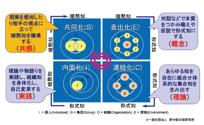 近年の経営において、形式知や数値分析に偏りがちですが、これでは人間が本来持つ創造性や知恵が損なわれてしまいます。人は生の経験の中で、主観的な意味を感じ、これを科学的な客観性に変換する過程を経ることで新たな知識を創造します。