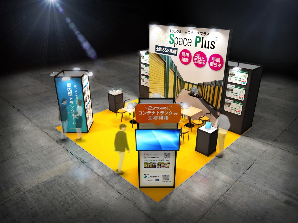 今回の展示では、ランドピアの主力事業であるトランクルーム事業の一環として、屋外型コンテナトランクと屋内型トランクルームを紹介します。「スペースプラス(R)」ブランドにおいて、2003年からセルフストレージ事業を展開し続けてきました。この事業は、特に近年のコロナ禍において需要が高まっており、テレワークの普及やオフィスの縮小により、収納スペースの確保が重要なテーマとなっています。