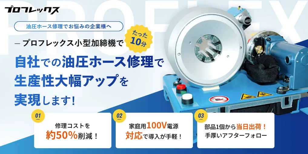 このような背景から、現場で迅速に修理を行う選択肢が注目されており、プロフレックスの「S2-AC」は非常に有効な回答を提供します。若干10分で油圧ホースの修理が行えるため、業務の効率化が期待されます。