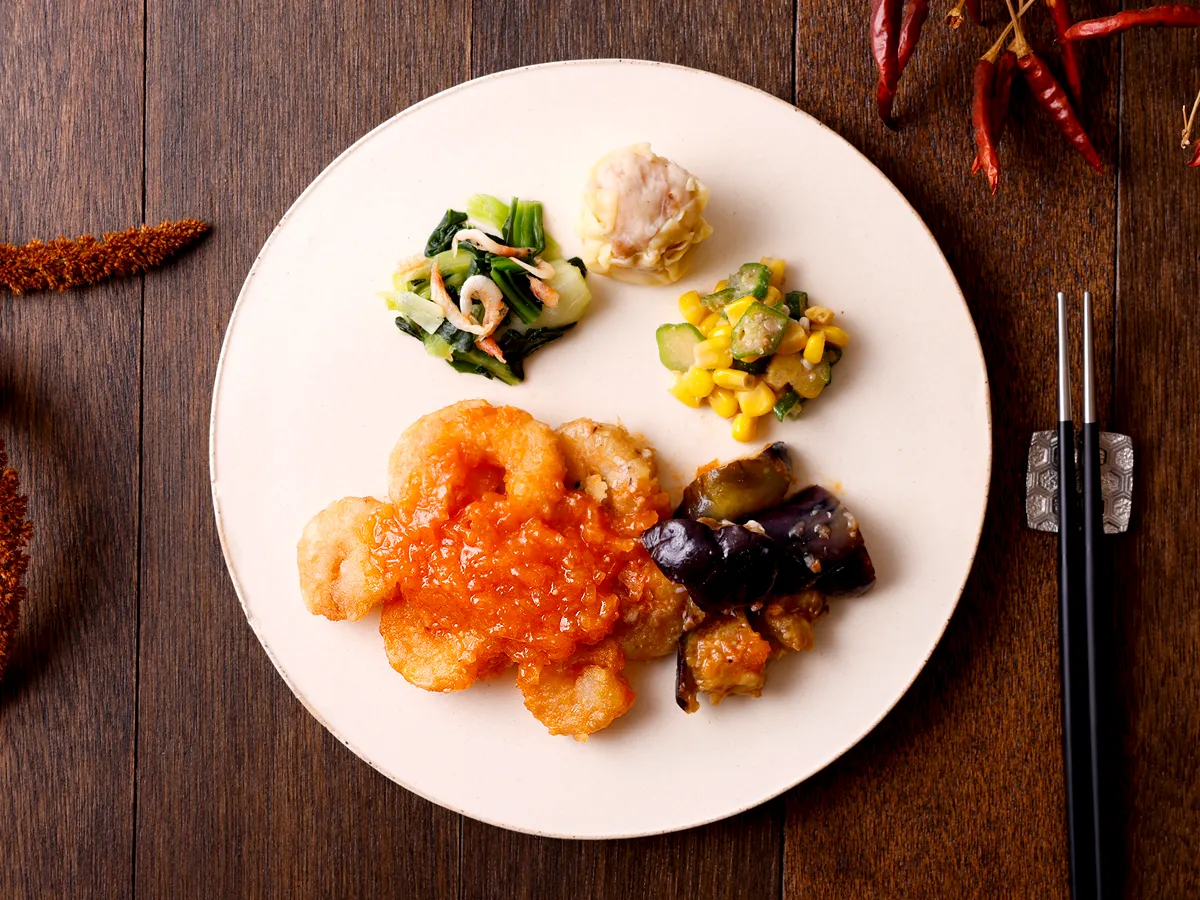 「海老満喫!チリディッシュ」もその一環で、特製のチリソースが特徴です。このソースは、甘酒と塩麹を隠し味に使い、深みのある味わいを実現しています。更に、ぷりぷりの海老をはじめ、旨味をたっぷり吸った揚げナスにこのソースを絡めて楽しむのがオススメです。