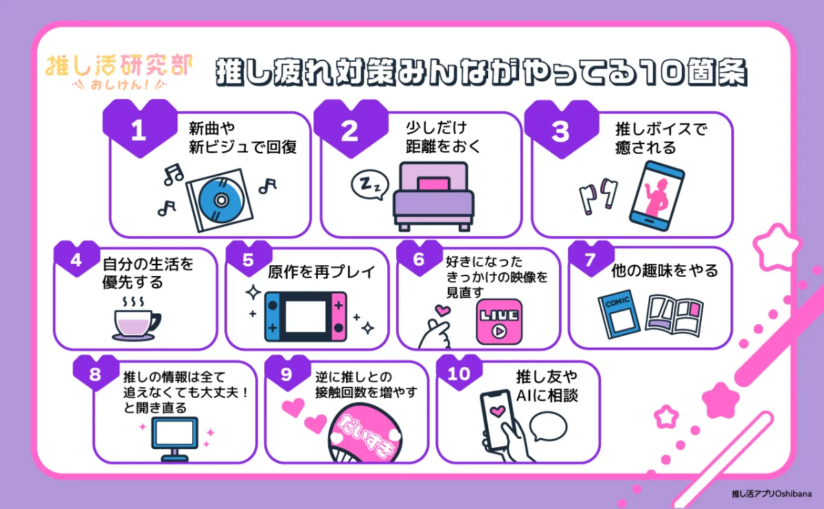 多くのユーザーは、モチベーションが低下したり推し疲れを感じたりした際にどのように対処しているのか、その工夫をいくつか挙げてみました。