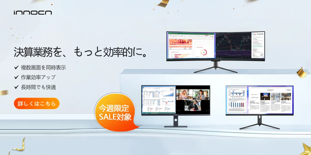 快適な作業環境の整備は、業務のパフォーマンスを向上させる要素です。特に決算期のこの時期、自宅でもオフィスでも、作業効率を上げるためにINNOCNモニターの導入を検討してみてはいかがでしょうか。