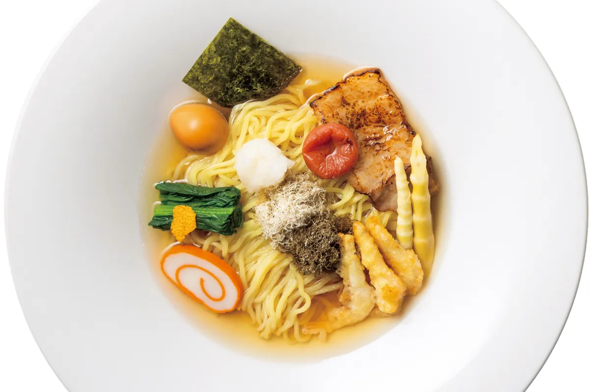 朝の時間を豊かに彩る「白えびラーメン」は、ホスピタリティ精神にあふれる料理長、東氏の手によって創り出された自慢の一皿。コンソメベースのスープには、富山の特産品である白えびがふんだんに使われ、その量はなんと100匹以上。じっくり焼き上げられた頭や殻から引き出される香ばしい香りが、食欲を刺激する。トッピングには「黒部名水ポーク」のチャーシューや白えびの天ぷら、さらには富山県産の小松菜など、選べる楽しさも魅力のひとつ。また、ふっくら炊き上げられた富山県産コシヒカリにスープを注ぎ、だし茶漬けとして楽しむこともできる。自分好みの朝ラーメンを楽しめるのが、朝食リニューアルの大きなポイントだ。