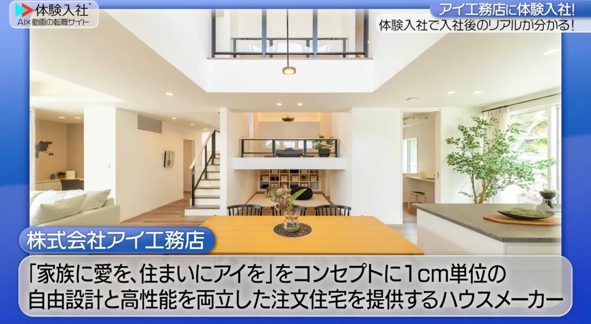 株式会社体験入社が提供する新しい形の採用支援サービス「体験入社動画」が、ハウスメーカーの株式会社アイ工務店に導入されました。これは、求職者が入社前のリアルな職場環境を理解する手助けをするためのものです。