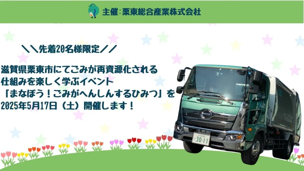 滋賀県栗東市において、2025年5月17日(土)に心温まる環境学習イベント「まなぼう!ごみがへんしんするひみつ」が行われます。このイベントは、地域の生活環境を守る努力を続ける栗東総合産業株式会社が主催し、ごみの再資源化について楽しく学べる機会を提供します。