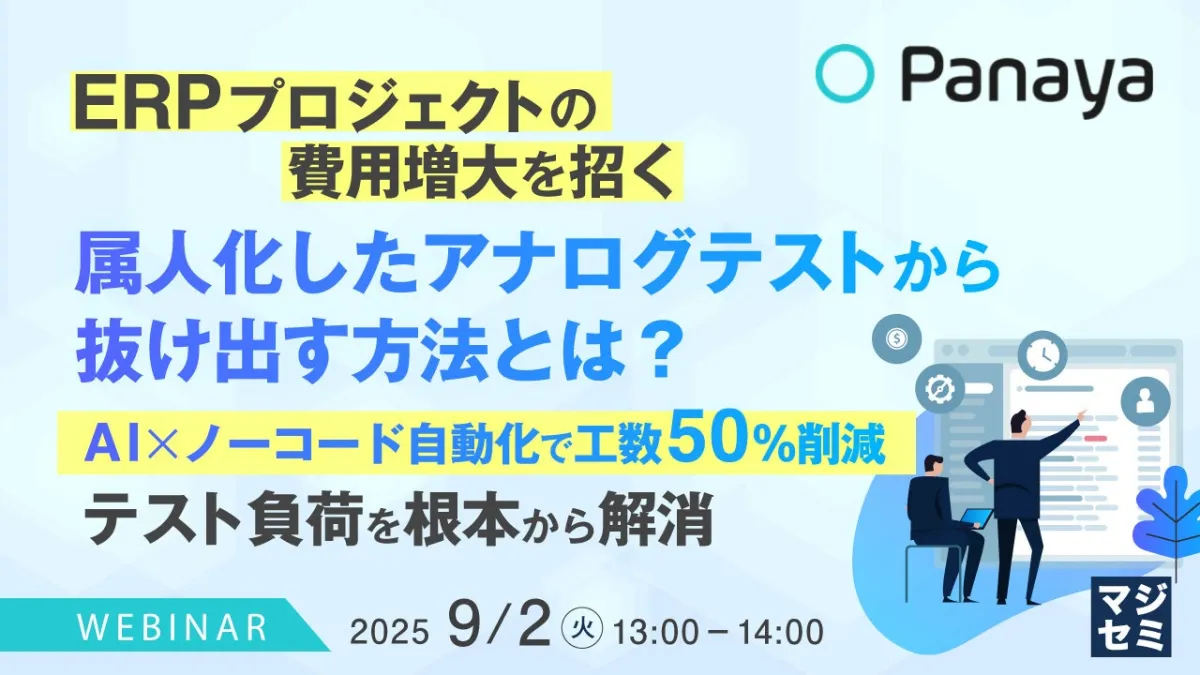 ERPの導入や改修において、テスト工程はその重要な一部を担っていますが、現実には属人化したアナログな方法が横行し、負担を増大させています。このウェビナーでは、従来型テストの弊害と、その克服に向けた具体的な取り組みを探ります。