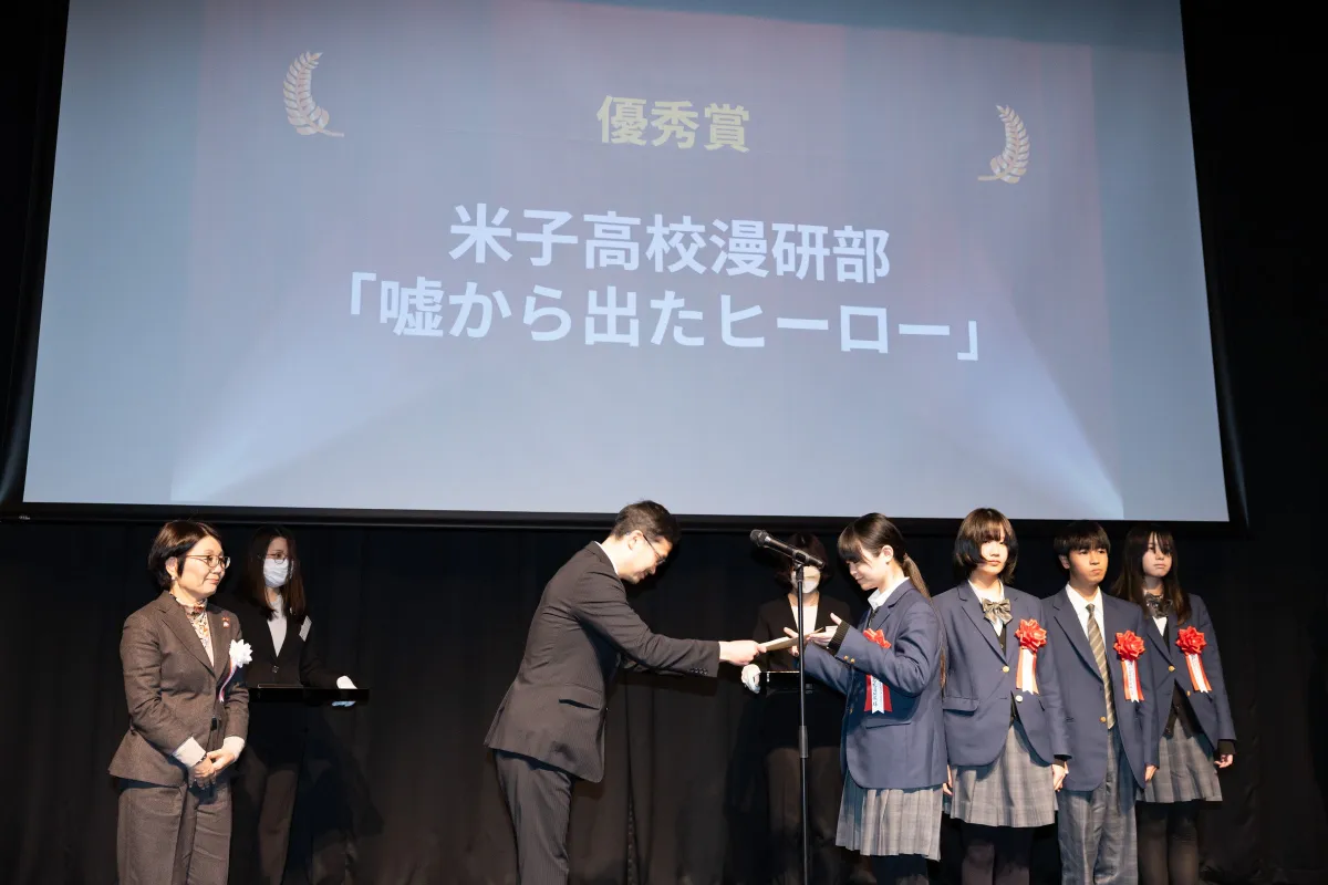 授賞式後には、受賞者の方々が各メディアからの質問に応じました。中でも米子高校漫研部の部長、森田さんは「チームをまとめるのが大変だったが、交流が深まって楽しかった」とコメントを述べ、応募のきっかけは顧問の指導にあったと話しました。