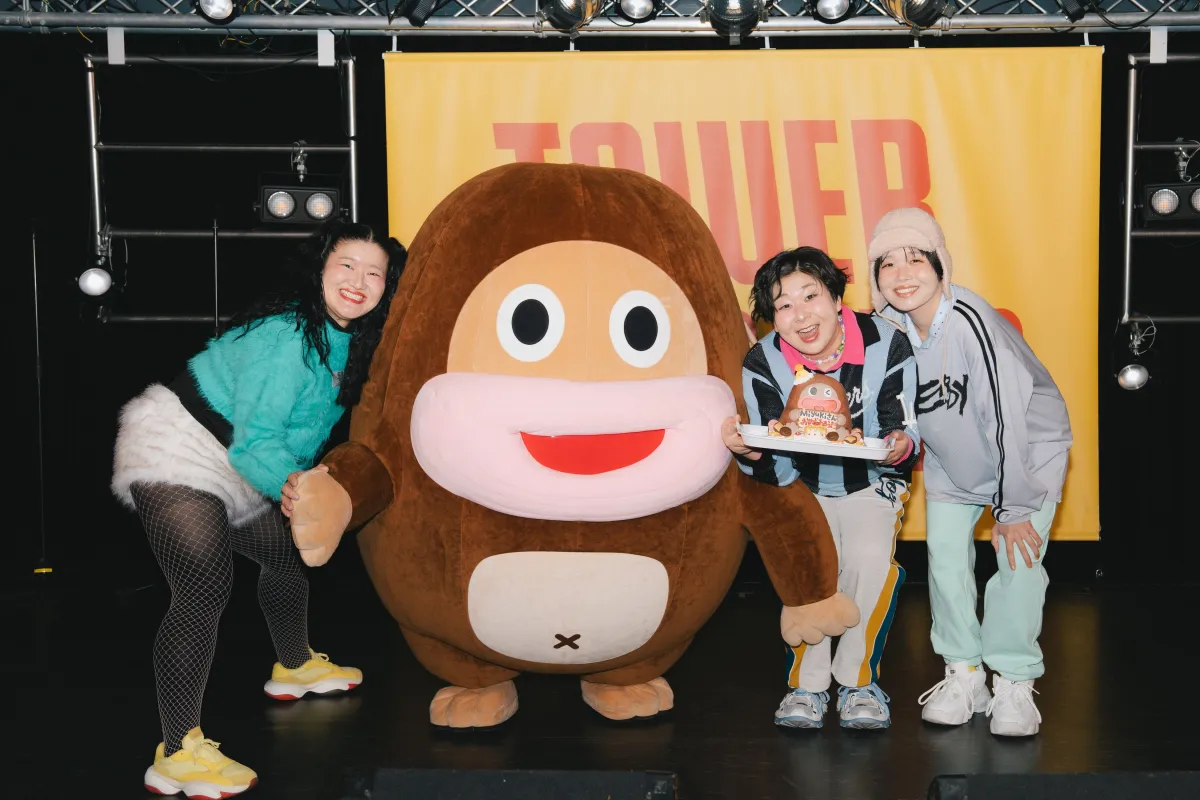 その後、サプライズとしてチョコジローが登場。彼は先日、MyMとのコラボが発表されたばかりで、Miyukiの誕生日をお祝いするために駆けつけたとのこと。「かわいいー!」とMiyukiが叫ぶ中、会場は喜びと笑いに包まれました。さらに、Mahiruがチョコジローの作ったケーキについて触れると、観客は笑いに包まれました。