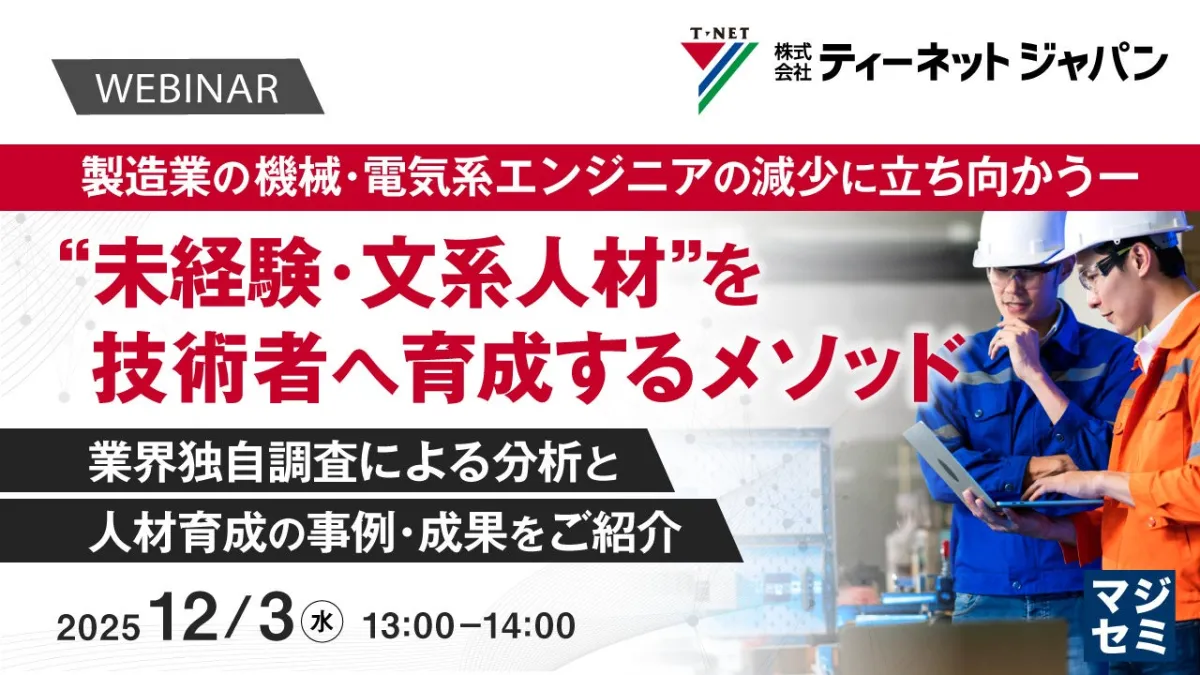 この度、ティーネットジャパンが主催するウェビナーでは、製造業における文系・未経験者の育成に関する具体例や効果について詳しく説明されます。参加者は最新の育成ノウハウを学び、実際の問題に対する解決策を得ることができる貴重な機会となるでしょう。