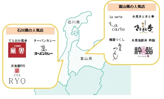 グルメ: 富山、石川の人気店に加え、「コールド・ストーン・クリ―マリー」、「ククルザ ポップコーン」、「みそかつ 矢場とん」など全国の人気店も出店。北陸ならではの食材を使ったメニューも豊富です。