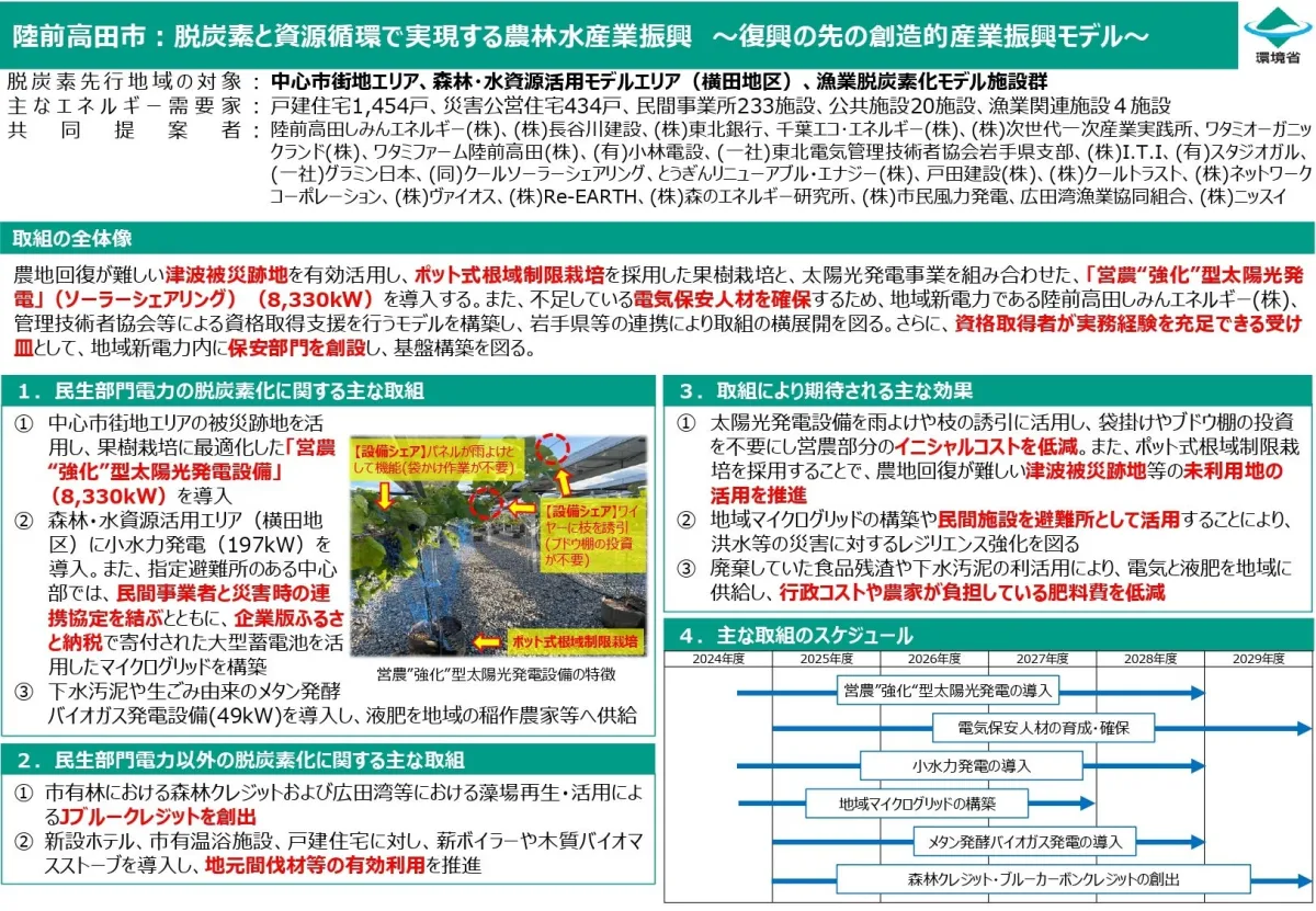 陸前高田市は、震災からの復興を果たした地域として知られています。これまでの復興事業において、地域の自然資源を有効活用し、営農や再生可能エネルギーの導入を進めてきました。そして、環境省からの正式な選定を受け、脱炭素をテーマにした新たな活動を展開することが決定しました。