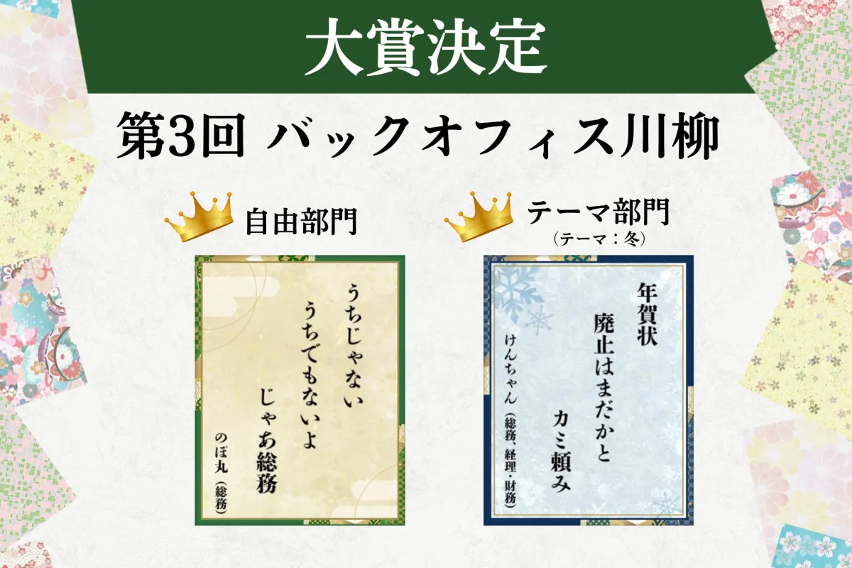 バックオフィスに関わる皆さまが共感できる、面白くて心温まる川柳が集まった第3回バックオフィス川柳。来年もまた、素晴らしい作品の数々が期待されます。