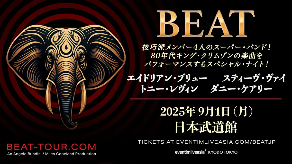 北米、南米を巻き込み、2024年から2025年にかけてのツアーを行うスーパー・バンド「BEAT」について紹介します。メンバーは元キング・クリムゾンのエイドリアン・ブリュー、トニー・レヴィン、スティーヴ・ヴァイ、そしてトゥールのダニー・ケアリーの4人。彼らは80年代の名盤『Discipline』『Beat』『Three Of A Perfect Pair』から選りすぐりの楽曲を演奏します。