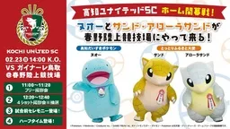今年、JFLから初めてJ3リーグに昇格した高知ユナイテッドのホーム開幕戦が、2月23日の日曜日に高知県立春野陸上競技場で行われます。この特別な日に、なんと「高知だいすきポケモン」のヌオーと「とっとりふるさと大使」のサンド・アローラサンドが駆けつけ、サポーターと共に試合を盛り上げるイベントが企画されています。