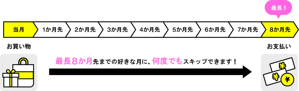 - - スキップ可能期間:本来の支払月から最長8か月先まで